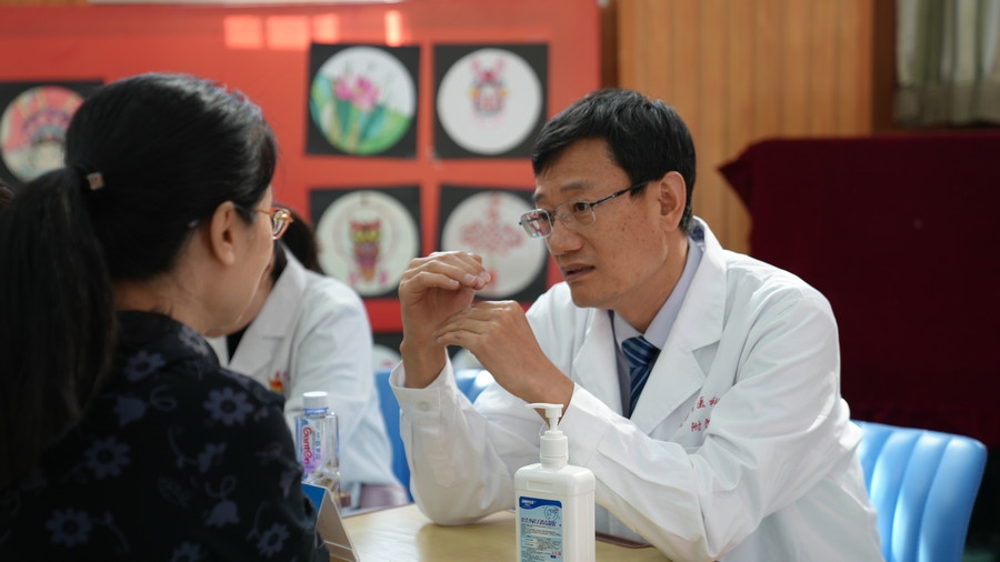 義診現(xiàn)場,前來咨詢就診的女教職工朋友有序候診,其中不少老師拿著體檢報告和既往病歷來到專家臺前進行詳細咨詢。此次義診,內(nèi)蒙古醫(yī)科大學附屬醫(yī)院醫(yī)療烏蘭牧騎派出了神經(jīng)內(nèi)科、消化內(nèi)科、心血管內(nèi)科、骨科、甲乳外科、泌尿外科、胸外科、超聲科、中醫(yī)科、婦產(chǎn)生殖醫(yī)學科、康復醫(yī)學科等11個專業(yè)的19位專家及醫(yī)護骨干,為廣大園丁提供查體、疾病咨詢和健康科普服務及測量血壓、把脈問診、超聲檢查、心電圖檢查、早期胃癌篩查、早期肝癌篩查等檢測項目。附院專家耐心細致地詢問病史、解答疑問,并根據(jù)不同的病癥和個體差異給予個性化的診療建議。同時對職業(yè)女性常見的消化系統(tǒng)疾病、甲狀腺疾病、乳腺疾病、婦科疾病、腰椎間盤突出等疾病開展了專業(yè)、細致、通俗的健康科普。