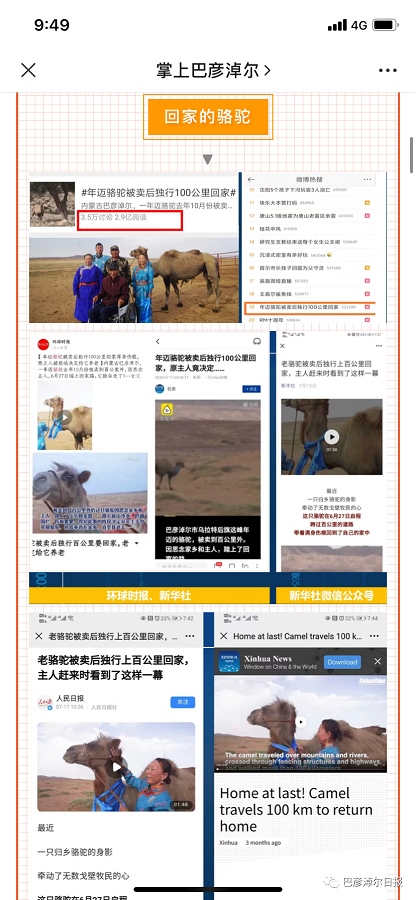 緊跟當?shù)責狳c新聞,關注民生民情,打造了“輸入法爸爸”“聽音樂的羊”“蒙古舞課間操”“11歲男孩豬圈寫作業(yè)順手接生了7頭豬崽”等一批點擊量超千萬次的現(xiàn)象級融媒體“爆款產(chǎn)品”,視頻總點擊量超過1億。特別是“蒙古舞課間操”,2020年9月28日在央視一套《新聞聯(lián)播》播出,是全自治區(qū)首家在央視一套《新聞聯(lián)播》播出的黨報媒體。原創(chuàng)短視頻《一路跋山涉水,巴彥淖爾這只回家的駱駝感動戈壁》先后登上微博熱搜、抖音熱榜,被央視新聞、人民日報客戶端、新華社客戶端、騰訊新聞及全國各大媒體的微信、微博、抖音、快手爭相轉發(fā),僅微博話題閱讀量就達到了3億次。