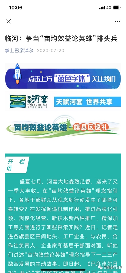 實施策采一體化以后,先后整體策劃推出了深度報道《河套——胡煥庸線西北的一個奇跡》,重磅述評《將畝均效益論英雄理念貫徹到底》《烏梁素海的前世今生》《塞上江南換新顏》等作品,從全新的角度解讀巴彥淖爾高質量發(fā)展,被新華網(wǎng)、人民網(wǎng)、今日頭條廣泛轉載,廣受好評。重磅報道《Hello,我是金草胡羊,我回家鄉(xiāng)了!》《24小時做一根面條》《河套小麥,麩皮都能吃》等讓讀者耳目一新,受到自治區(qū)黨委宣傳部的充分肯定。