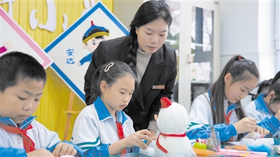“全國(guó)大眾冰雪季給我們帶來(lái)了一個(gè)絕佳的主題切入點(diǎn),讓傳統(tǒng)的羊毛氈工藝與冰雪運(yùn)動(dòng)相互交融碰撞,孩子們?cè)诖链萄蛎倪^(guò)程中,對(duì)冰雪文化有了更深層次的理解,也對(duì)非遺技藝充滿敬意。”健康街小學(xué)美術(shù)教師山丹邊說(shuō)邊悉心指導(dǎo)學(xué)生把握形狀、色彩與紋理,幫助他們將創(chuàng)意更好地在羊毛氈作品中呈現(xiàn)?!拔以谥谱鬟@個(gè)滑雪小人的時(shí)候,就一直在想自己滑雪時(shí)的快樂(lè),每戳一針都很用心,希望能把這份快樂(lè)表現(xiàn)在作品里?!彼哪甓鄬W(xué)生宋子祺說(shuō)。