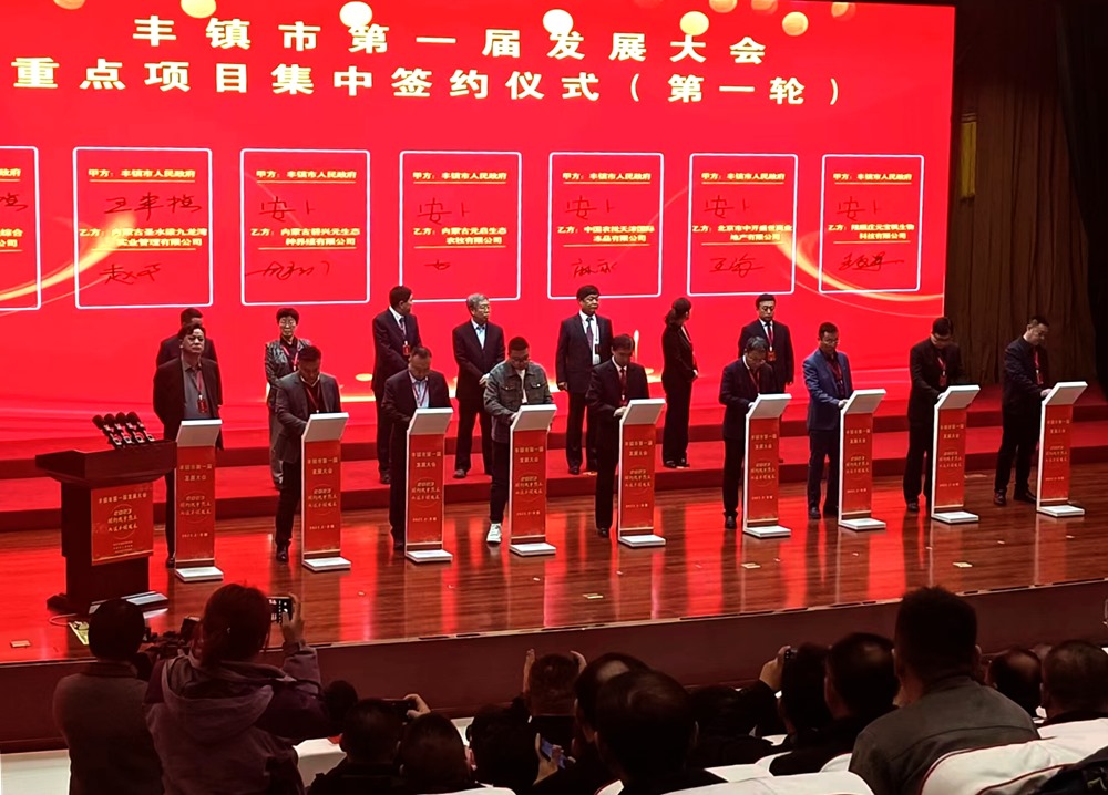 豐鎮(zhèn)市第一屆發(fā)展大會(huì)重點(diǎn)項(xiàng)目集中簽約儀式。新華網(wǎng) 發(fā)