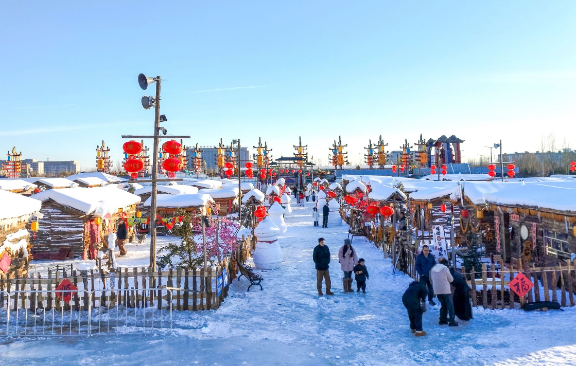 踏入雪鄉(xiāng)板塊,50個復刻北方傳統(tǒng)風貌的院落集群映入眼簾,木柵欄上垂掛的紅燈籠與蓬松雪層相映成趣,屋檐下懸垂的雪舌、雪簾勾勒出童話般的輪廓。每個院落都藏著專屬打卡場景,推門而入可見家庭場景,窗外是皚皚白雪,屋內(nèi)飄著燒烤、火鍋和奶茶的醇厚香氣,瞬間驅(qū)散冬日寒意。游客穿梭其間,鈴鐺輕響,為這份雪鄉(xiāng)煙火氣增添了濃郁的民族風情。