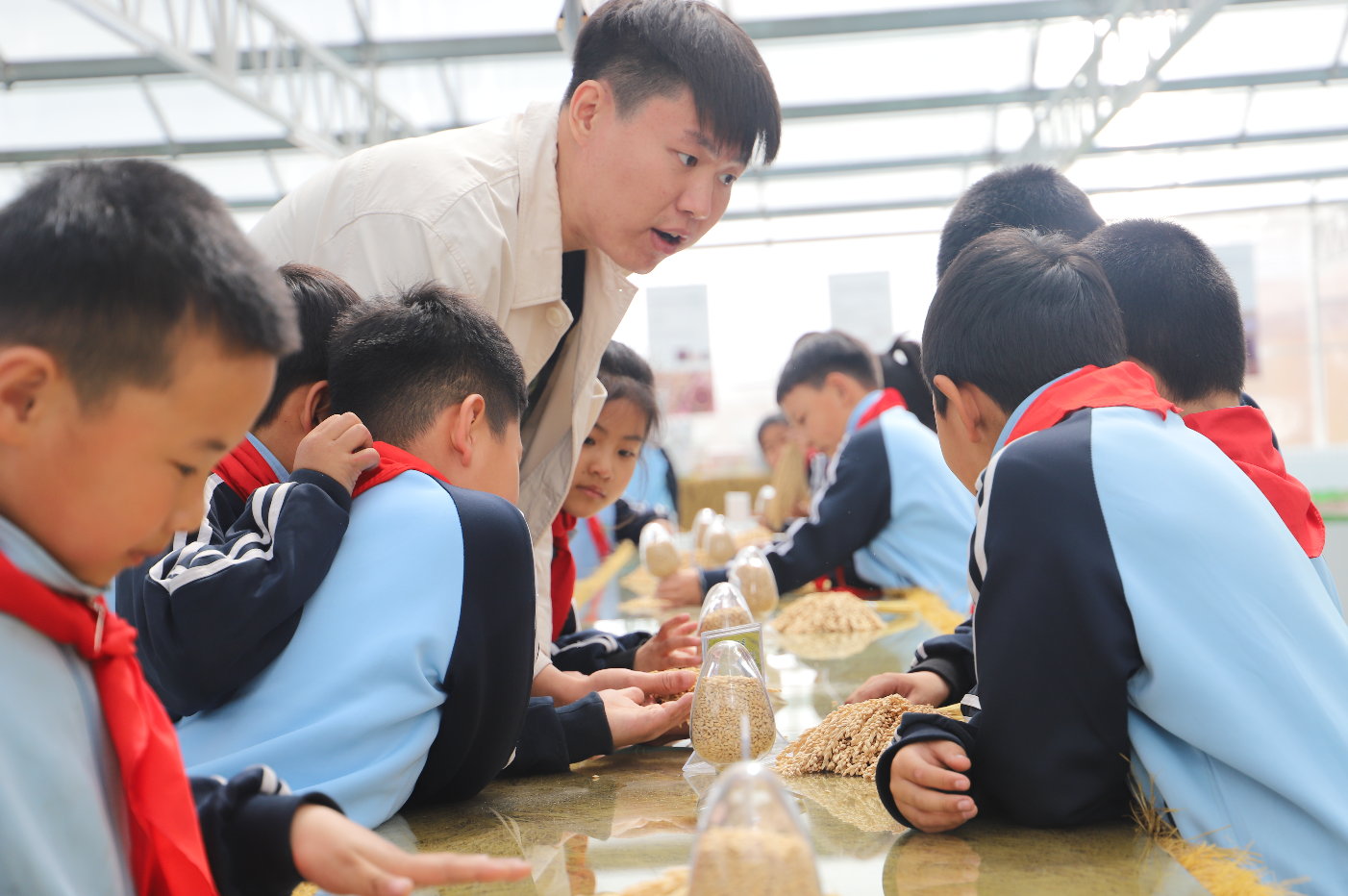 “同學(xué)們,大家快看,這是水稻的幼苗。再過幾個(gè)月,它們就會長成金燦燦的稻穗啦!”科技小院的講解員老師一邊指著嫩綠的秧苗,一邊繪聲繪色地向孩子們介紹水稻的生長過程。