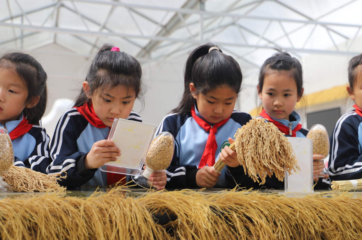 來自烏蘭浩特市呼和馬場學(xué)校的孩子們,如同歡快的小鳥般簇?fù)碓谥v解員老師身旁,他們一個(gè)個(gè)全神貫注,津津有味地聆聽著一粒米從播種、抽穗到收割的奇妙旅程。這是孩子們第一次如此近距離、深入地去了解一粒米的“前世今生”,這是興安盟大米科技小院再一次迎來一批充滿好奇與求知欲的研學(xué)小客人。