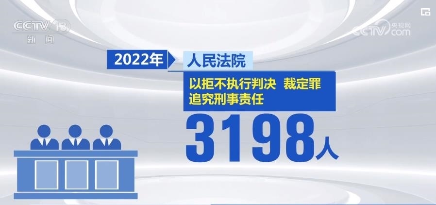 2022年,人民法院以拒不執(zhí)行判決、裁定罪追究刑事責任3198人。下一步,最高人民法院將聯(lián)合公安機關、檢察機關開展集中打擊拒不執(zhí)行判決、裁定犯罪專項行動,建立健全公檢法機關依法懲治拒不執(zhí)行判決、裁定犯罪的常態(tài)化工作機制。