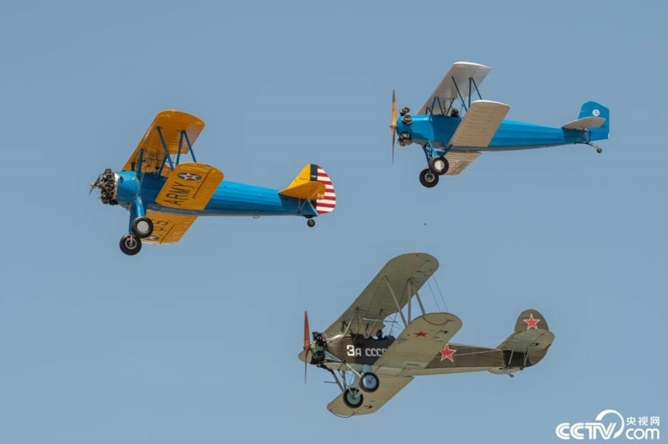 西班牙馬德里舉行老式飛機航空展,多型老式飛機進行飛行表演。