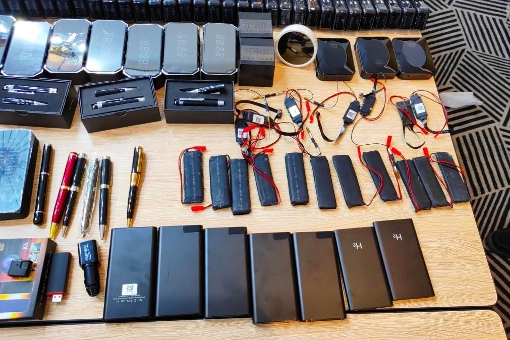 為及時斬斷犯罪鏈條,饒河縣公安局成立專案組,全力攻堅(jiān)此案。經(jīng)過深入研判分析,專案組鎖定了嫌疑人王某、龔某、陳某身份。在抓獲現(xiàn)場,警方發(fā)現(xiàn)偽裝成充電寶、打火機(jī)、插座、燈泡等物品的各類竊聽竊照專用器材,種類之多、數(shù)量之大,讓在場民警大為震驚。