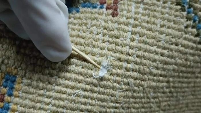深圳郵局海關(guān)關(guān)員在對過境貨物開展監(jiān)管時發(fā)現(xiàn),1票包裹機檢圖像可疑,隨即對其開箱查驗。查驗發(fā)現(xiàn),該票包裹內(nèi)有一塊做工精致的地毯,編織到地毯內(nèi)的透明細塑料管中藏匿有細粉末一批,毛重11555.8克。經(jīng)現(xiàn)場試劑檢測,判斷為冰毒。目前,海關(guān)緝私部門已介入調(diào)查處理。