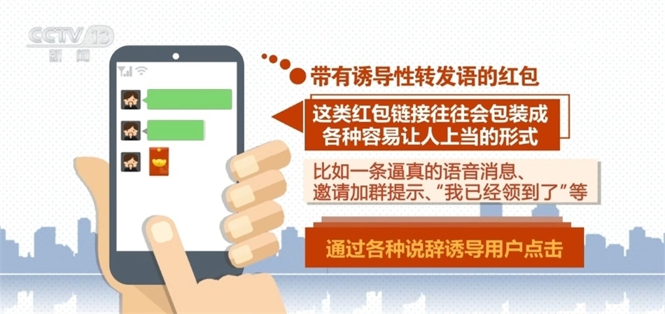央視網(wǎng)消息:過年期間搶紅包“拼手速”成為一種新玩法。但一些不法分子卻打起了壞主意,制造了一些假紅包,企圖騙取錢財(cái)。公安機(jī)關(guān)提醒,如果看到這6種微信紅包千萬別領(lǐng)!