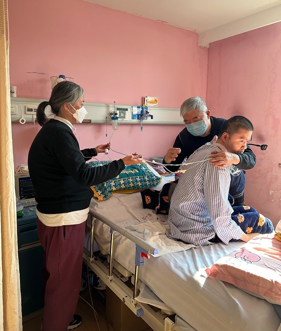 昌碩的身體缺乏自主運(yùn)動(dòng)的能力,當(dāng)痰液卡在喉嚨時(shí),整張臉會(huì)因?yàn)橹舷q得通紅,眼睛充血,脖子上的經(jīng)脈鼓起,身體會(huì)作出一些條件反射性的抽搐動(dòng)作。鄭建英為他吸完痰后,他面色才逐漸恢復(fù)平靜。
