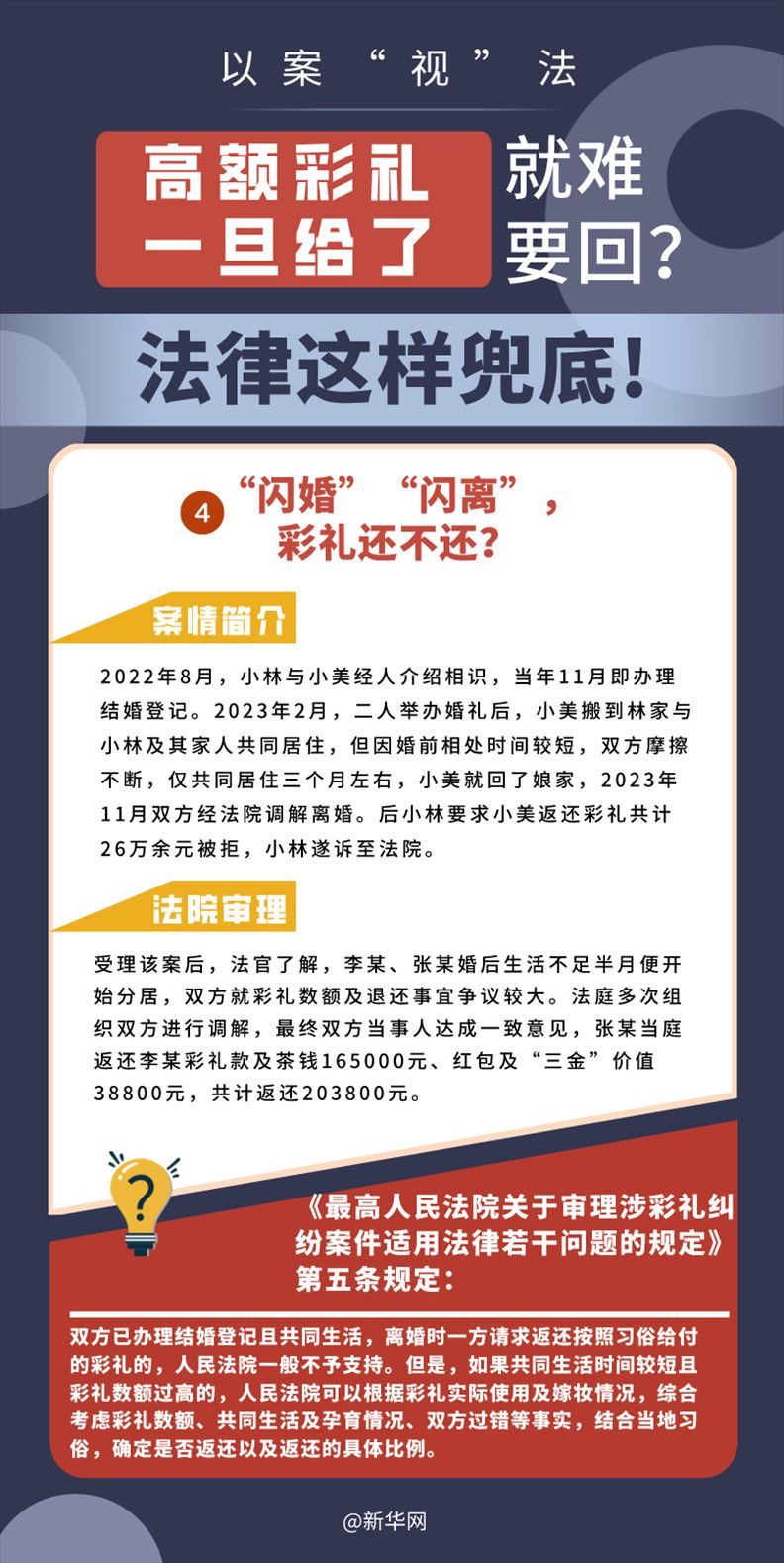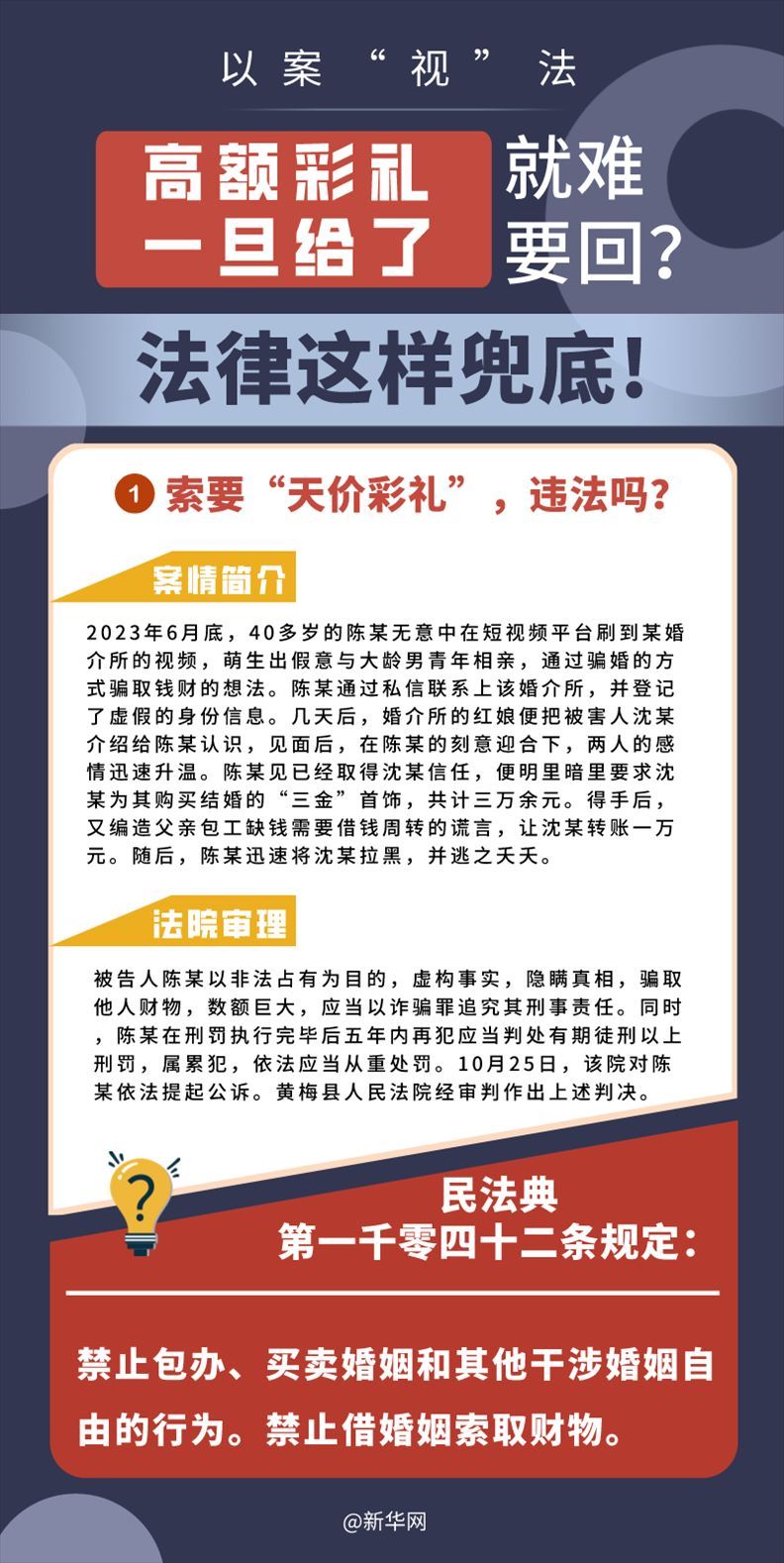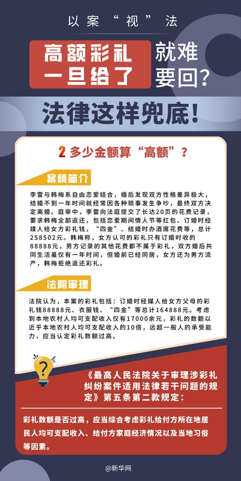 “五一”長假期間,各地迎來了婚禮高峰期,“彩禮”話題,尤其農(nóng)村高額彩禮現(xiàn)象備受關(guān)注。破解高價(jià)彩禮,在解決爭議的層面,司法盡了最大努力兜底。本期《以案“視”法》針對(duì)涉“高額彩禮”糾紛,帶大家學(xué)習(xí)相關(guān)法律知識(shí)。