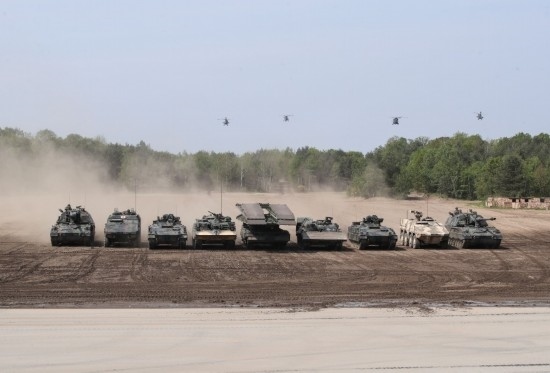 2019年5月20日,在德國蒙斯特,北約快速反應(yīng)部隊(duì)裝甲車及直升機(jī)參與演示。(新華社記者單宇琦攝)