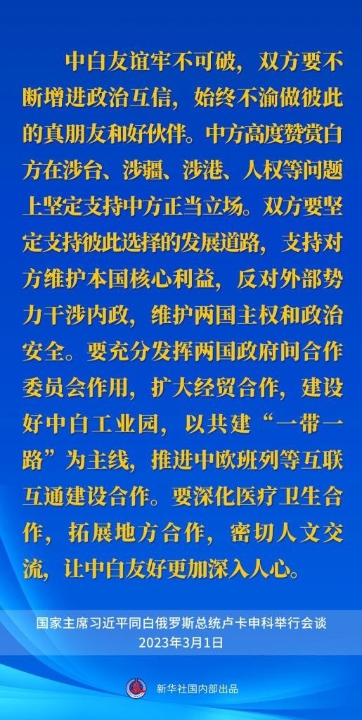 3月1日,國家主席習(xí)近平在人民大會(huì)堂同來華進(jìn)行國事訪問的白俄羅斯總統(tǒng)盧卡申科舉行會(huì)談。一起來看習(xí)近平主席的談話要點(diǎn)。