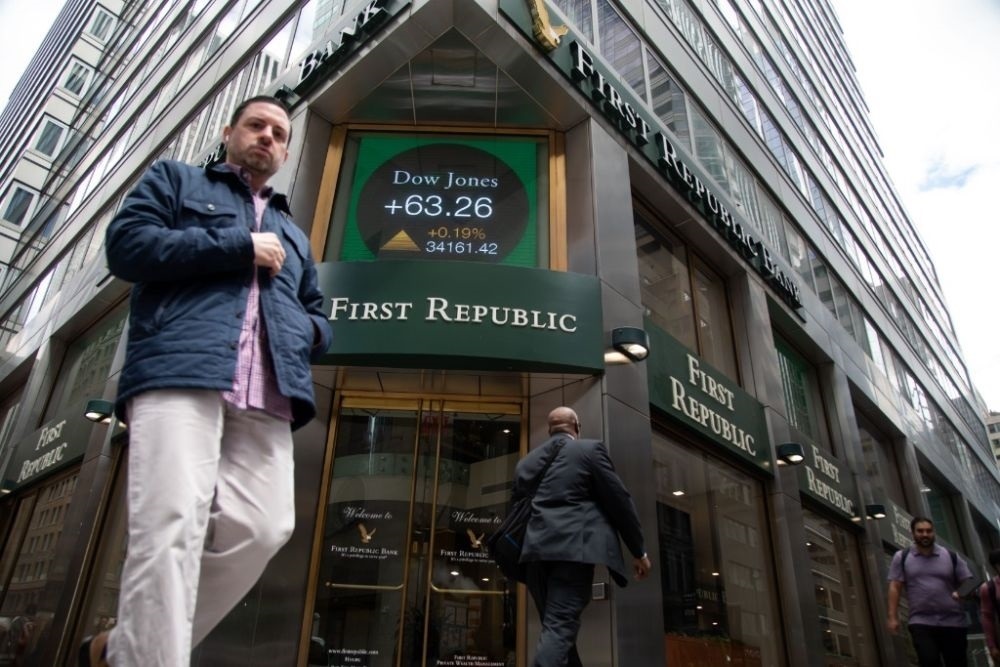 5月1日,在美國紐約,行人從一家第一共和銀行前走過。新華社發(fā)(郭克攝)