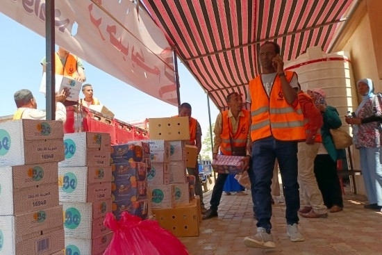 5月2日,在埃及南部阿斯旺省,工作人員為逃離蘇丹進(jìn)入埃及的難民準(zhǔn)備物資(手機(jī)拍攝)。新華社發(fā)(拉德萬攝)