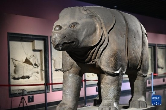 這是在西安碑林博物館拍攝的唐獻(xiàn)陵石犀(5月9日攝)。據(jù)記載,唐代時(shí)曾有外國(guó)向中國(guó)贈(zèng)送活犀。