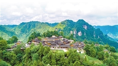 鳥瞰湖南省湘西土家族苗族自治州花垣縣十八洞村梨子寨風光。石林榮攝(影像中國)