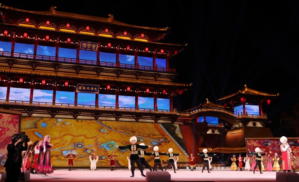 宴會后,習近平夫婦同貴賓們共同觀看中國同中亞國家人民文化藝術(shù)年暨中國-中亞青年藝術(shù)節(jié)開幕式演出。