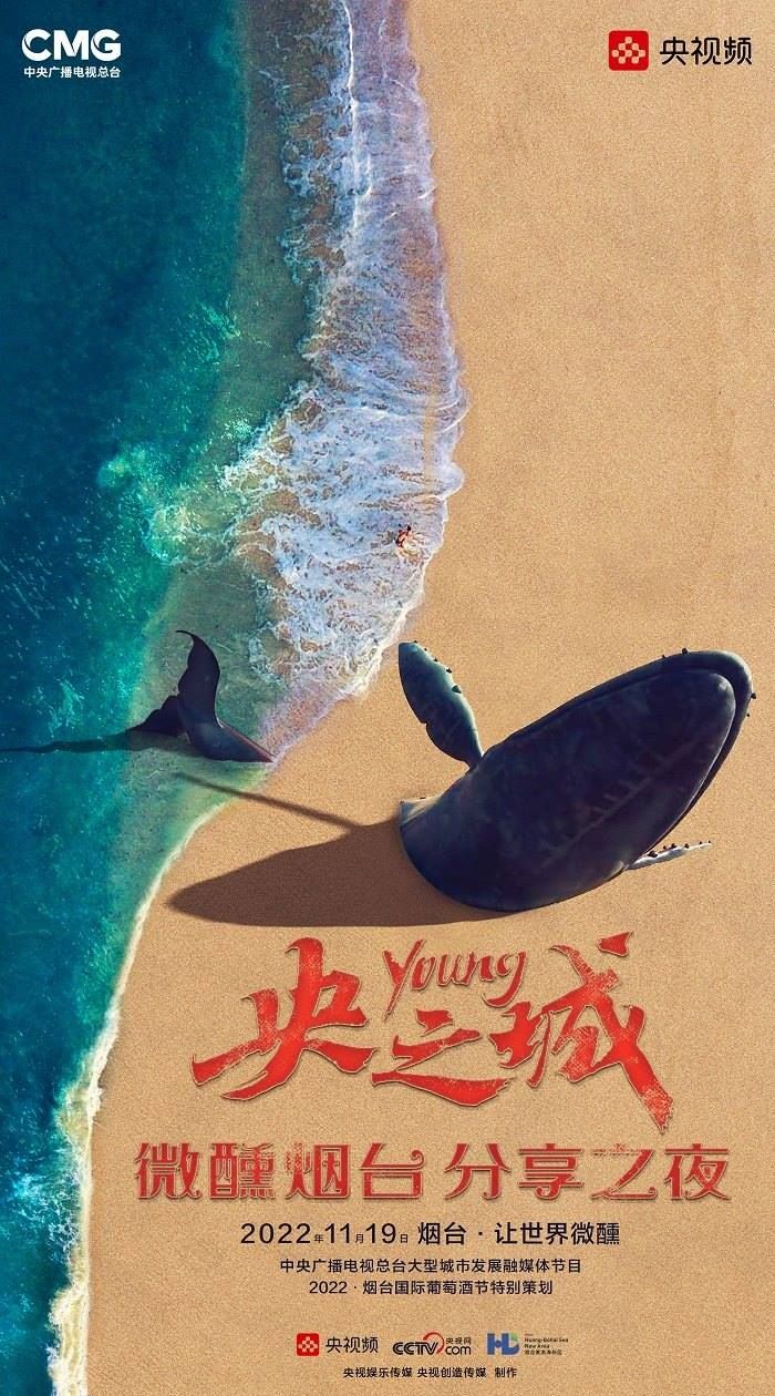 田雨峰在拍攝短片海報(bào)用圖的時(shí)候,首先確定了畫面中最突出的形象元素,同時(shí)也是交代短片故事發(fā)生地的地標(biāo)性雕塑——“孤獨(dú)的鯨“。這個(gè)雕塑如今是煙臺(tái)開發(fā)區(qū)金沙灘的網(wǎng)紅打卡地,網(wǎng)友為其起名”鯨落“。碩大的鯨魚從淺海處躍出海面,魚頭和魚尾凌空飛躍,其身體的一部分似藏在沙灘里。這是一個(gè)在真實(shí)生活中不會(huì)出現(xiàn)的景象,充滿了動(dòng)畫般的奇幻想象,位于煙臺(tái)碧藍(lán)的海邊,又天然地帶上了一點(diǎn)浪漫的色彩。短片中”舉杯煙臺(tái),分享此刻“的Slogan綴在尾聲,分享的正是煙臺(tái)這座城市獨(dú)有的沙灘、夜空、煙火和人間。短片中可以娓娓道來般逐漸交代,但在海報(bào)里,二環(huán)用畫面底部金色沙灘上”孤獨(dú)的鯨“,畫面上方如大海般湛藍(lán)的星空,星空中綻放的煙花,鎖定了地球上唯一的煙臺(tái)。田雨峰鏡頭中短片主角的人物照被二環(huán)拼貼到童話般色彩斑斕的畫面里,被著意縮小了的黑色小女孩于是成為一切奇幻、浪漫想象的迸發(fā)之源,和世界分享一個(gè)妙趣橫生的想法。