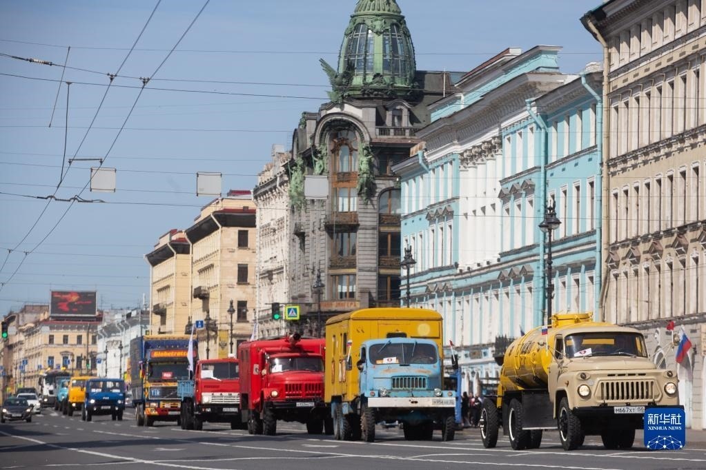 5月20日,各式老爺車(chē)在俄羅斯圣彼得堡街頭巡游。
