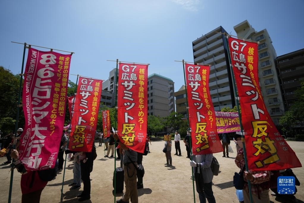 當(dāng)天,大批民眾再次在廣島舉行大規(guī)模集會(huì)游行,抗議七國集團(tuán)(G7)峰會(huì)舉行。