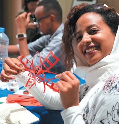 首期“數(shù)字創(chuàng)新與跨境電商”訓(xùn)練營學(xué)員展示剪紙作品。 吳雨濃攝