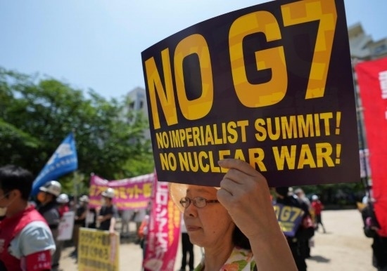 5月21日,民眾聚集在日本廣島袋町公園,抗議七國集團峰會。新華社記者張笑宇攝