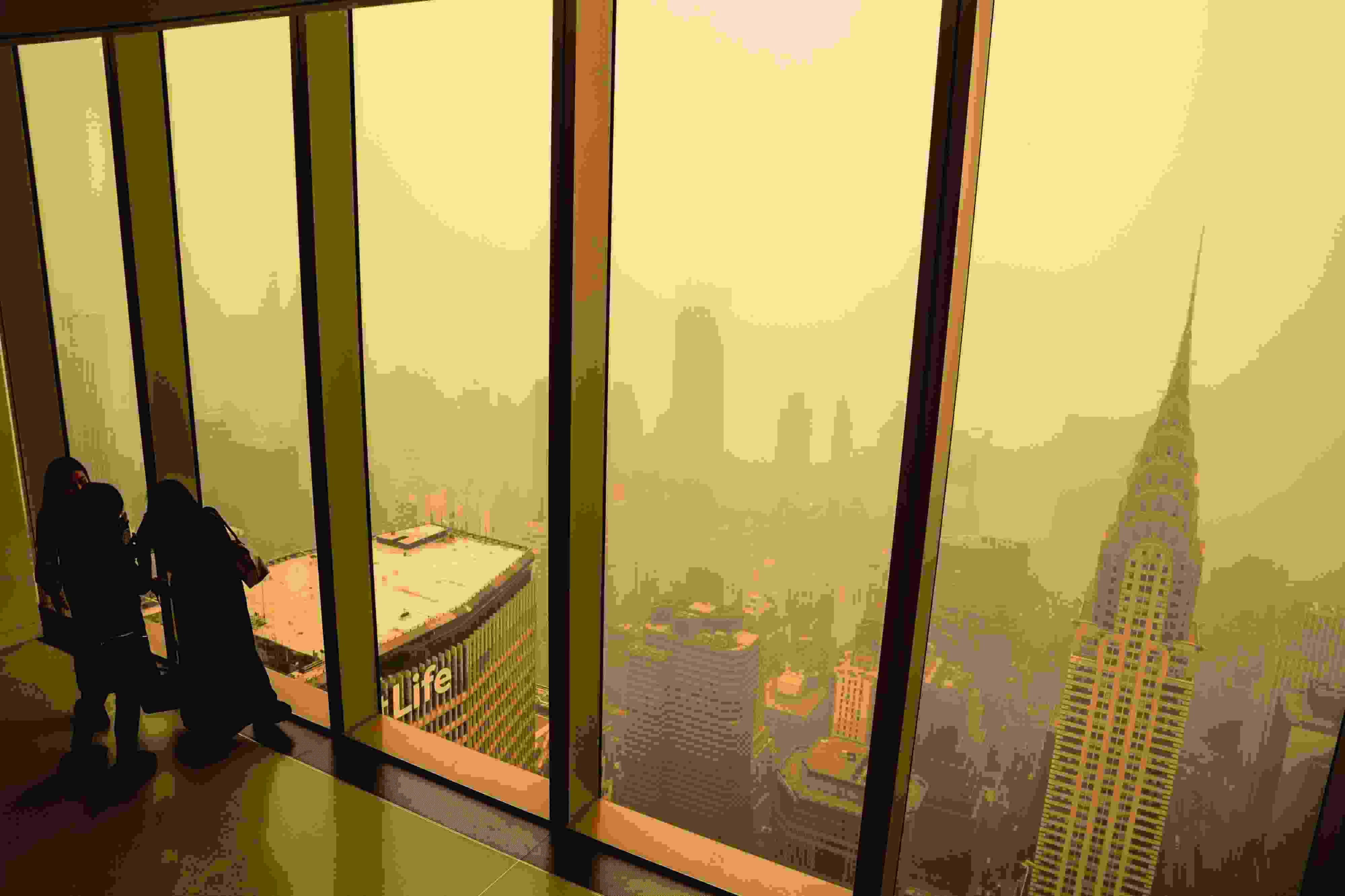 當?shù)貢r間2023年6月7日,受加拿大野火煙霧持續(xù)南下影響,美國紐約籠罩在“橙色霧霾”中。當天,紐約成為全球空氣污染最嚴重的城市。 視覺中國