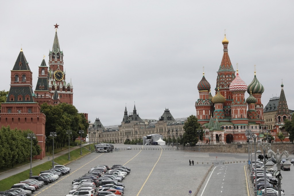 6月24日,執(zhí)勤人員在俄羅斯莫斯科紅場(chǎng)附近警戒。新華社記者白雪騏攝