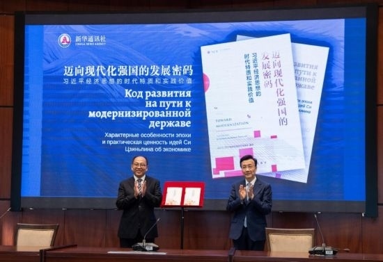 會(huì)議重點(diǎn)宣介和展示的新華社國(guó)家高端智庫報(bào)告《邁向現(xiàn)代化強(qiáng)國(guó)的發(fā)展密碼——習(xí)近平經(jīng)濟(jì)思想的時(shí)代特質(zhì)和實(shí)踐價(jià)值》引發(fā)與會(huì)各國(guó)嘉賓廣泛關(guān)注。該智庫報(bào)告是新華社研究習(xí)近平新時(shí)代中國(guó)特色社會(huì)主義思想的創(chuàng)新成果,從哲學(xué)維度、方略維度、戰(zhàn)術(shù)維度和全球視野,全面闡釋習(xí)近平經(jīng)濟(jì)思想的核心要義、精神實(shí)質(zhì)、豐富內(nèi)涵,以“美”“實(shí)”“效”“協(xié)”“共”五個(gè)關(guān)鍵字深入解讀習(xí)近平經(jīng)濟(jì)思想的鮮明特征,系統(tǒng)展現(xiàn)了其中所蘊(yùn)含的大國(guó)經(jīng)濟(jì)治理智慧。