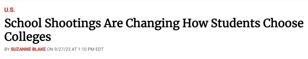 也是由于校園槍擊事件的日漸頻繁,美國(guó)學(xué)生選擇大學(xué)的方式也隨之發(fā)生變化。據(jù)美國(guó)《新聞周刊》(News Week)網(wǎng)站27日?qǐng)?bào)道,僅在2023年,全美就發(fā)生了53起校園槍擊事件。“槍支暴力檔案”(Gun Violence Archive)的數(shù)據(jù)顯示,各類與槍支有關(guān)的死亡總共有3萬(wàn)多起。