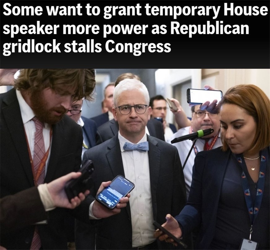 在此之前,為確保眾議院“正常履職”,有人提出當務(wù)之急是擴大麥克亨利的職權(quán)。不過,一些共和黨議員對此并不感興趣,認為在預算和其他重大政策方面,為臨時議長擴權(quán)并不是有效的做法。