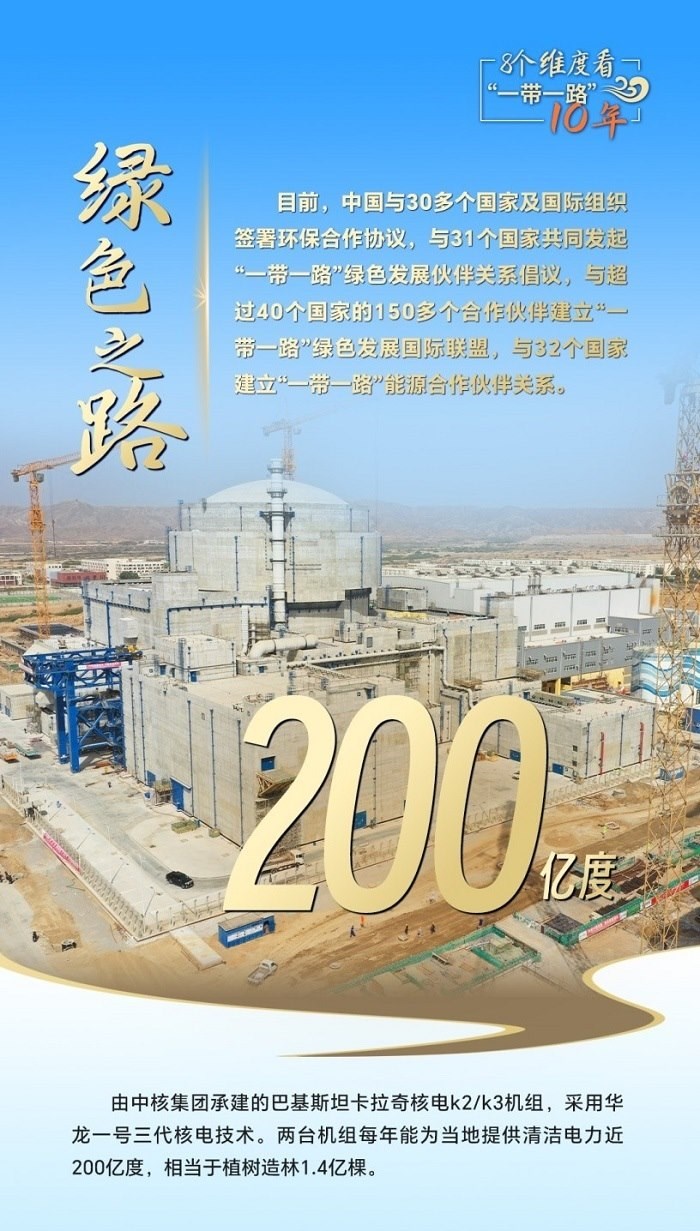 十年來,“綠色絲綢之路”建設(shè)取得豐碩成果。中國(guó)已與30多個(gè)國(guó)家及國(guó)際組織簽署環(huán)保合作協(xié)議,與31個(gè)國(guó)家共同發(fā)起“一帶一路”綠色發(fā)展伙伴關(guān)系倡議,與32個(gè)國(guó)家建立“一帶一路”能源合作伙伴關(guān)系。