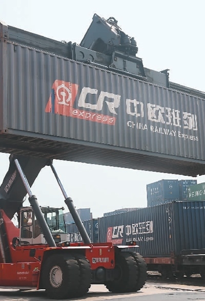 中鐵集裝箱運輸有限責(zé)任公司鄭州中心站外勤主任龔赟丹見證了中歐班列國際物流網(wǎng)壯大的進(jìn)程?!爸袣W班列剛在鄭州開通時,每天裝運集裝箱的卡車才10多輛,現(xiàn)在每天都有四五百輛,業(yè)務(wù)范圍覆蓋40多個國家140多個城市?!饼徻S丹說。
