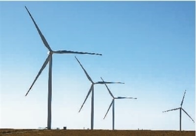 哈薩克斯坦札納塔斯風(fēng)電場風(fēng)機。 新華社發(fā)