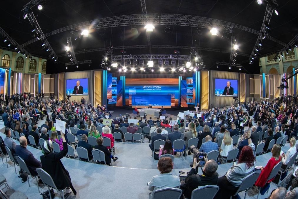 以往,兩場活動分開舉行,今年合二為一稱作“普京的年度盤點”,提問機會變少,各國媒體記者更是踴躍爭取。俄總統(tǒng)新聞秘書佩斯科夫點名《紐約時報》記者提問時被普京打斷。普京說:“不,先請新華社記者提問,然后再讓《紐約時報》問。”