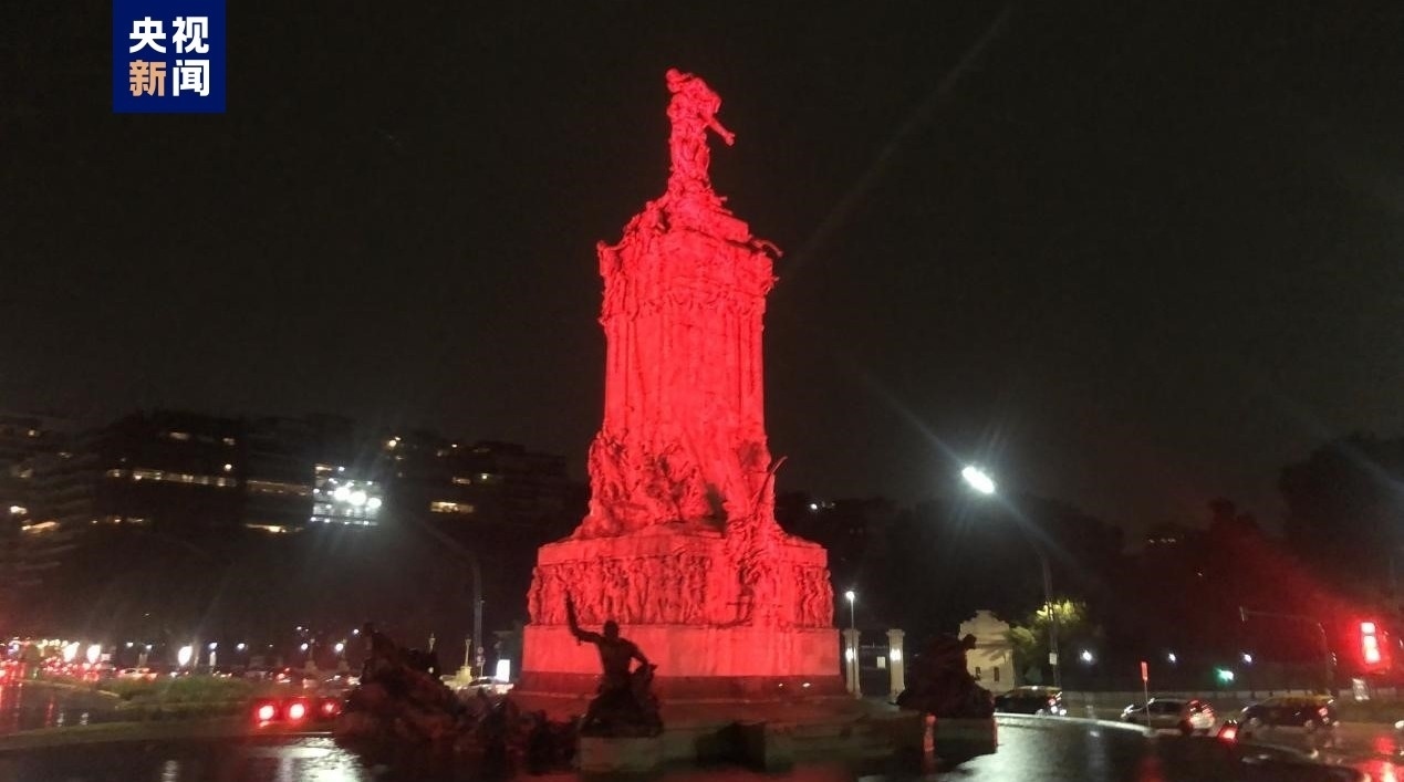當地時間2月9日,為慶祝中國農歷新年,阿根廷首都布宜諾斯艾利斯8處地標性建筑同時點亮“中國紅”,吸引眾多當地民眾駐足關注。