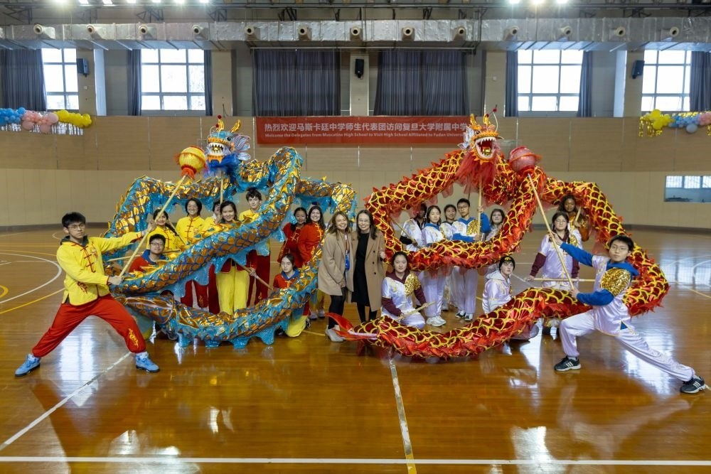 1月29日,馬斯卡廷學(xué)生在上海參加舞龍體驗(yàn)活動。