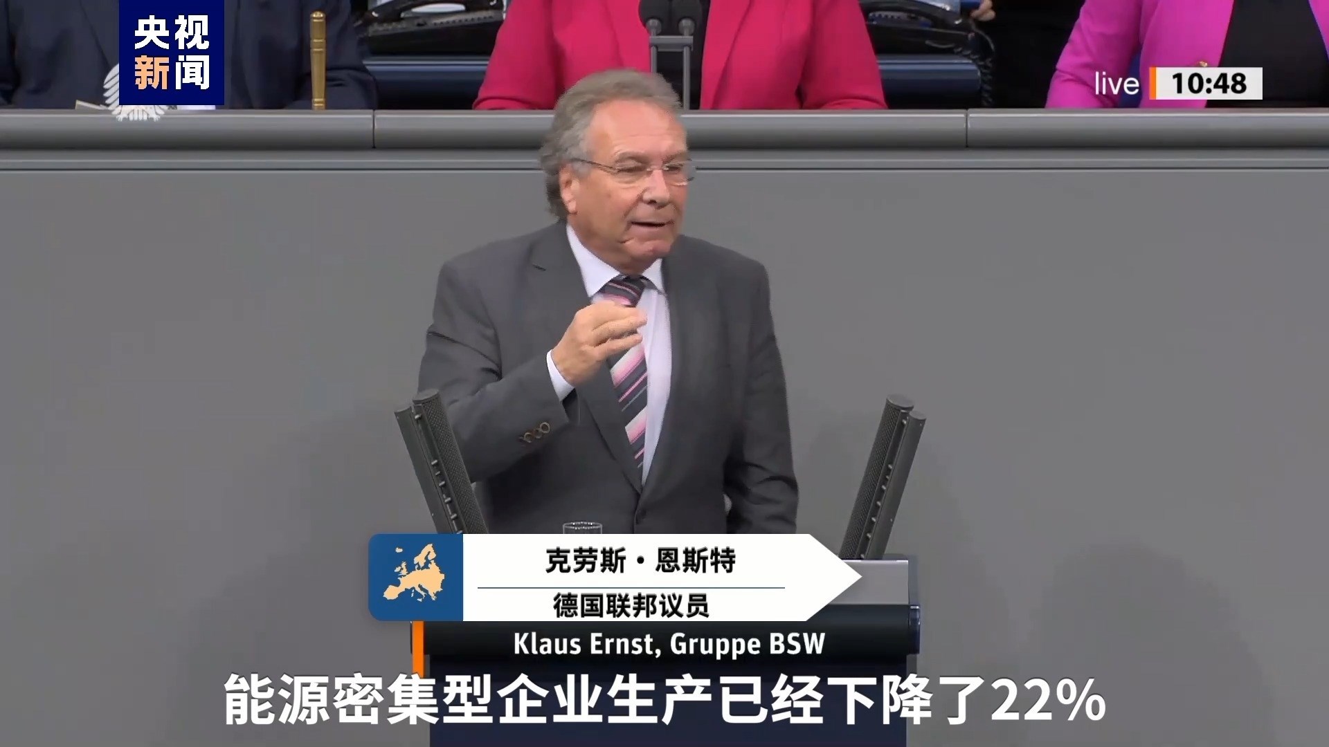 德國聯(lián)邦議員 克勞斯·恩斯特:我們確切地知道,能源密集型企業(yè)生產(chǎn)已經(jīng)下降了22%。這個下降并不是憑空捏造的。我們目前對于能源密集型企業(yè)的能源定價已經(jīng)達到了它們無法承擔、不愿支付的水平。因此,它們自然會嘗試將生產(chǎn)轉(zhuǎn)移到其他國家,例如美國。