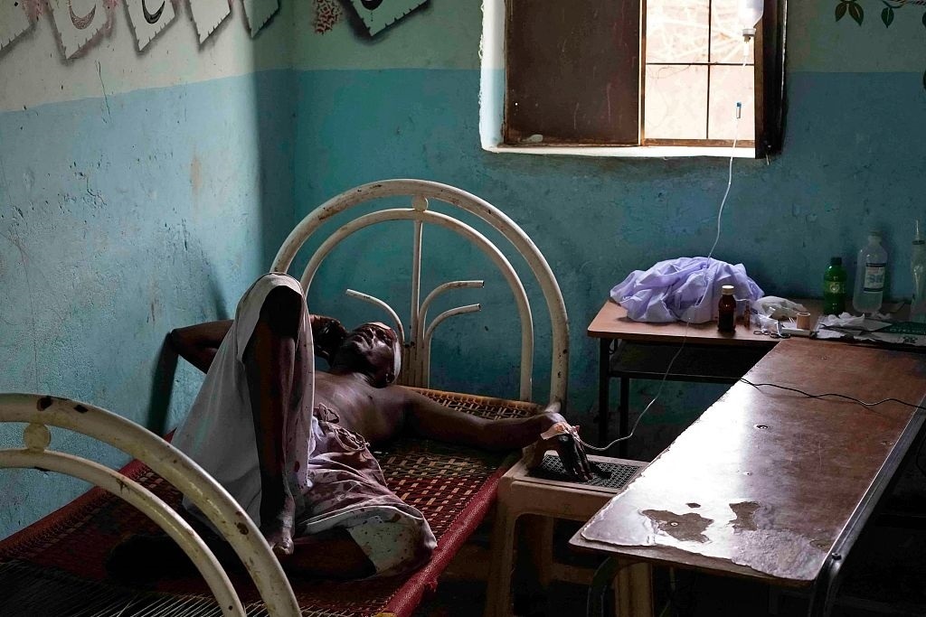當?shù)貢r間2023年6月6日,蘇丹恩圖曼,一名受傷的蘇丹男子躺在床上。當日,首都喀土穆爆發(fā)了激烈的戰(zhàn)斗。