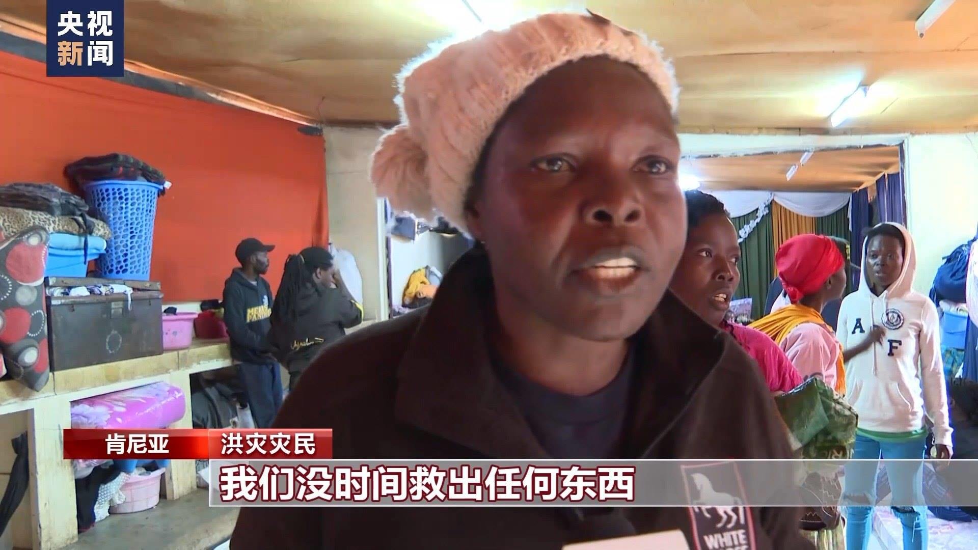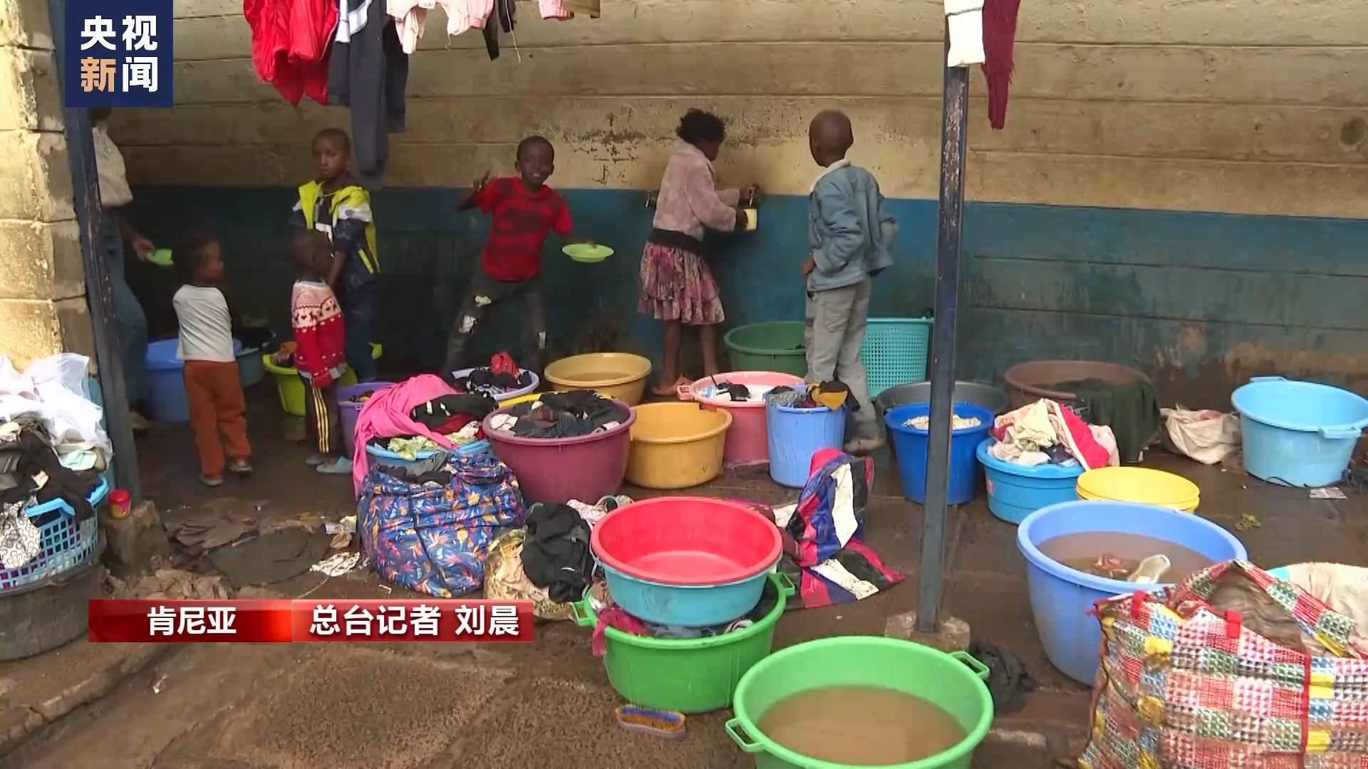 總臺記者 劉晨:這里是位于肯尼亞首都內(nèi)羅畢市中心馬薩雷貧民窟里的一所小學(xué),因為洪災(zāi)失去住所的居民們被臨時安置在這里。由于暴雨影響,肯尼亞當(dāng)?shù)貙W(xué)校的開學(xué)時間從本周又向后推遲了一周?,F(xiàn)在我身后這樣的教室已經(jīng)被改造成了臨時寢室,供災(zāi)民休息。政府送來了棉被和枕頭,每天也會定時為這里的難民提供食物。