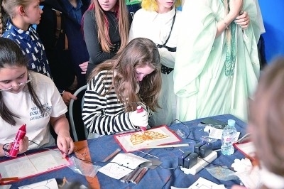 在俄羅斯首都莫斯科,一名學(xué)生在4月舉行的中文日活動(dòng)上制作糖畫。 新華社發(fā)