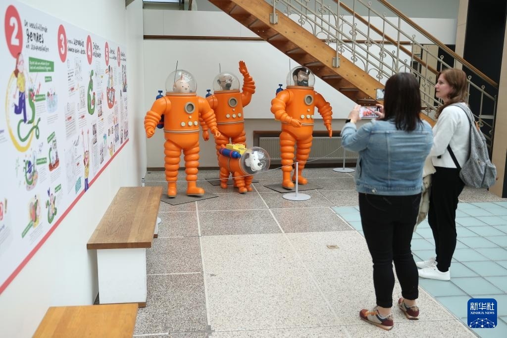 5月18日,人們?cè)诒壤麜r(shí)布魯塞爾的漫畫博物館參觀拍照。