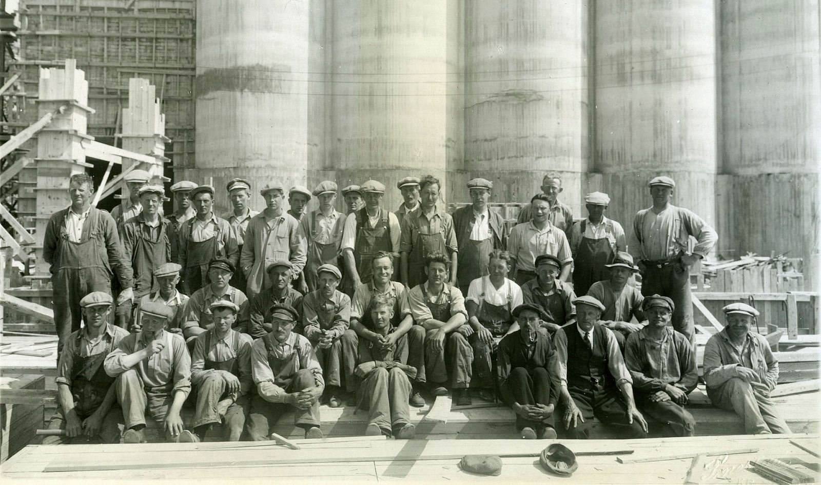 1935 年谷倉(cāng)建筑前,工人們合影。