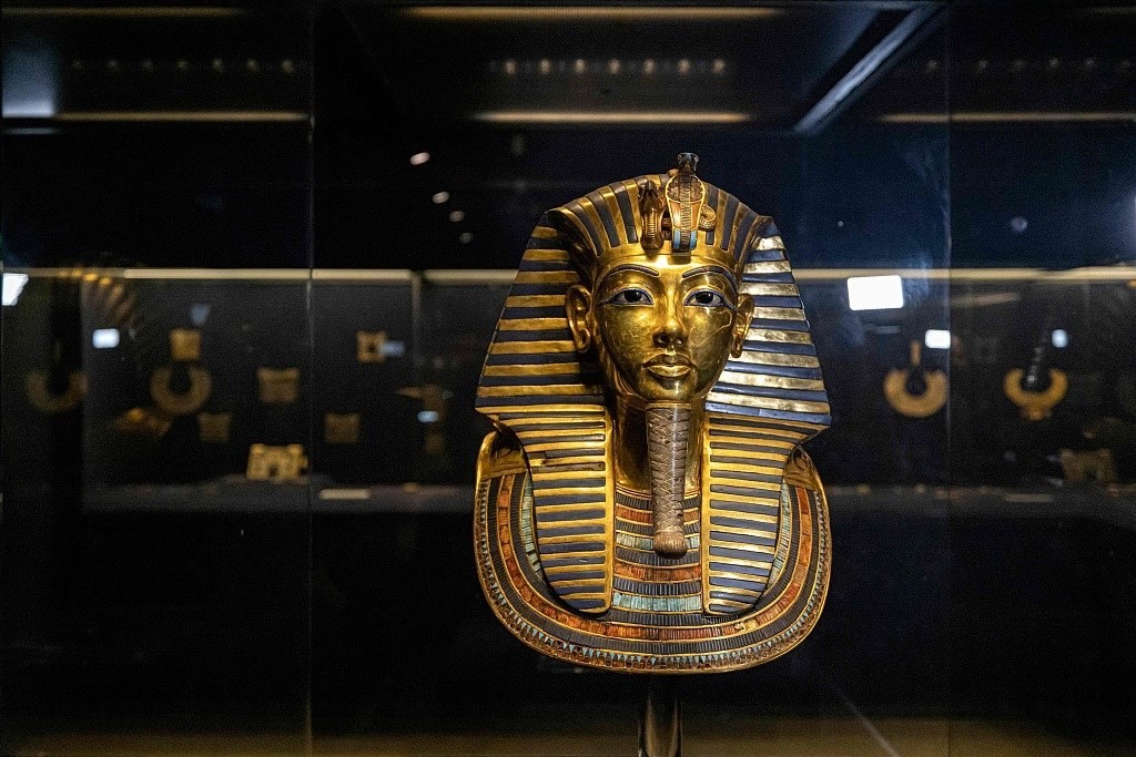 埃及博物館展出了古埃及新王國(guó)法老圖坦卡蒙(公元前1334-1325年)的黃金墓葬面具