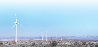 位于南非北開普省德阿鎮(zhèn)的中國國家能源集團龍源電力南非公司運營的德阿風電項目風機。新華社記者 董江輝攝