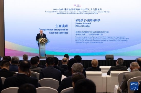 新華社莫斯科9月23日電(記者江宥林 劉愷)當?shù)貢r間23日,2024金磚國家治國理政研討會暨人文交流論壇在俄羅斯首都莫斯科舉行。來自中國、俄羅斯、印度、巴西、南非、埃及、伊朗、阿聯(lián)酋等金磚國家和金磚國家新開發(fā)銀行等的120余名代表圍繞“金磚國家的現(xiàn)代化之路”主題展開研討交流。