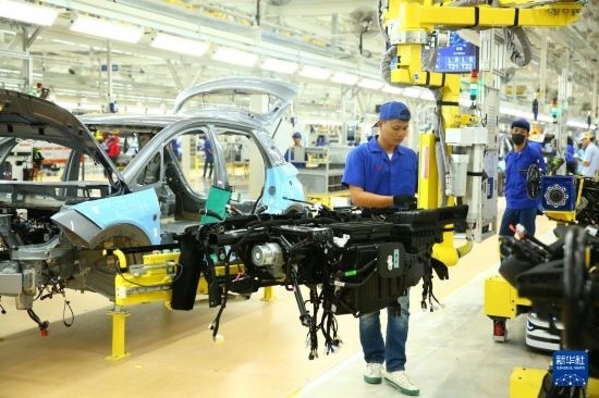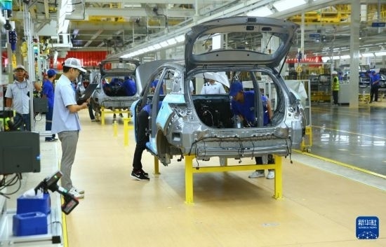 7月4日,工人在位于泰國羅勇府的比亞迪泰國工廠工作。新華社記者 孫瑋彤 攝