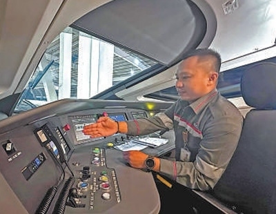 經(jīng)過幾個(gè)月的在崗培訓(xùn),阿古斯對(duì)駕駛動(dòng)車已是駕輕就熟?!熬W(wǎng)壓正?!薄斑^分相注意”“斷電好了”“合電好了”“目標(biāo)速度350,恒速328設(shè)定好了”……駕駛中,他嫻熟地應(yīng)對(duì)不同路況。5時(shí)40分,阿古斯駕駛列車安全停靠在終點(diǎn)站萬隆德卡魯爾站。張躍對(duì)他的操作進(jìn)行總結(jié)并給出改進(jìn)建議,阿古斯逐條認(rèn)真記錄下來。張躍告訴記者,阿古斯認(rèn)真好學(xué),“希望他能成為印尼第一批高鐵動(dòng)車組司機(jī)中的業(yè)務(wù)能手和榜樣,帶動(dòng)更多印尼學(xué)員成為優(yōu)秀的高鐵動(dòng)車組司機(jī),讓更多印尼民眾享受到安全、快捷、現(xiàn)代化的高鐵出行方式”。