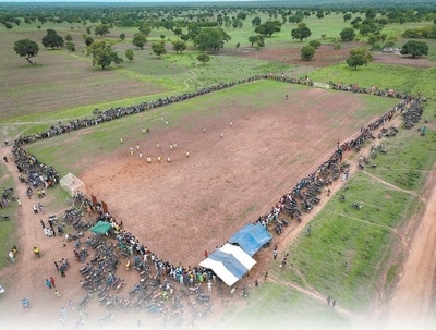 由中國援貝寧棉花技術(shù)援助項目組修建的足球場(無人機照片)。新華社記者 李亞輝攝